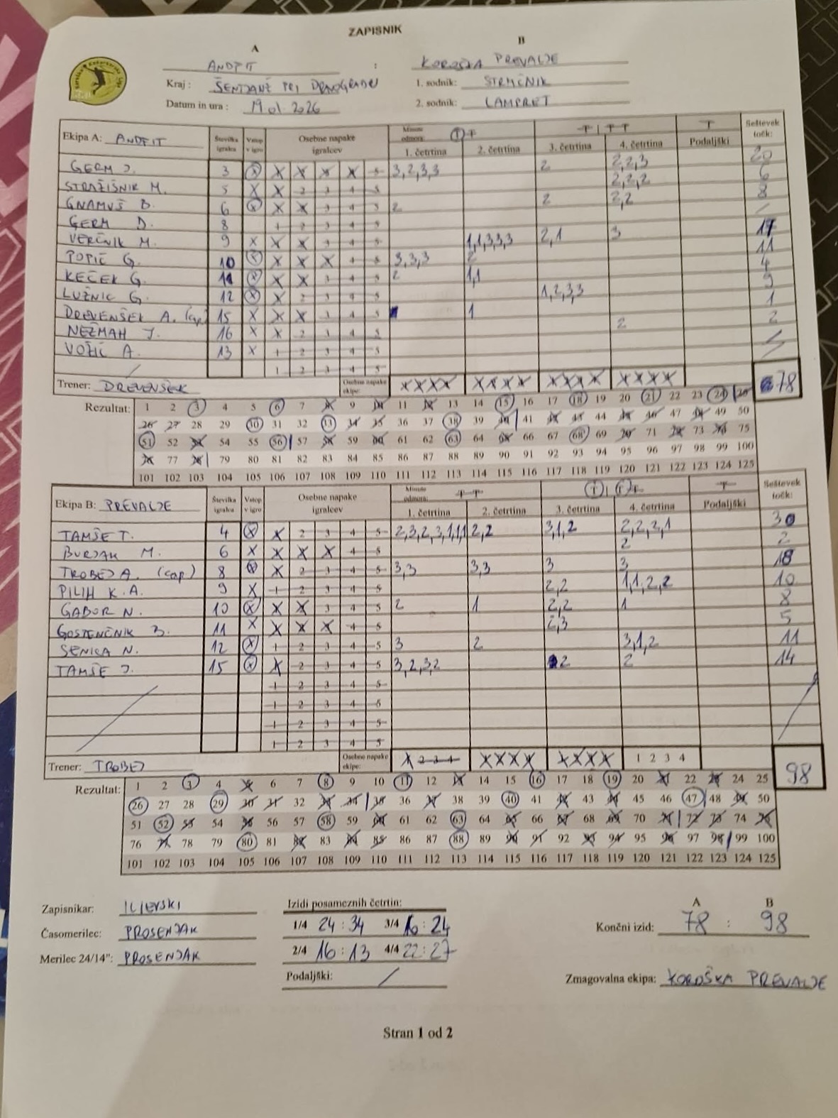 | KK Koroška | 34 | 13 | 24 | 27 | 98 |