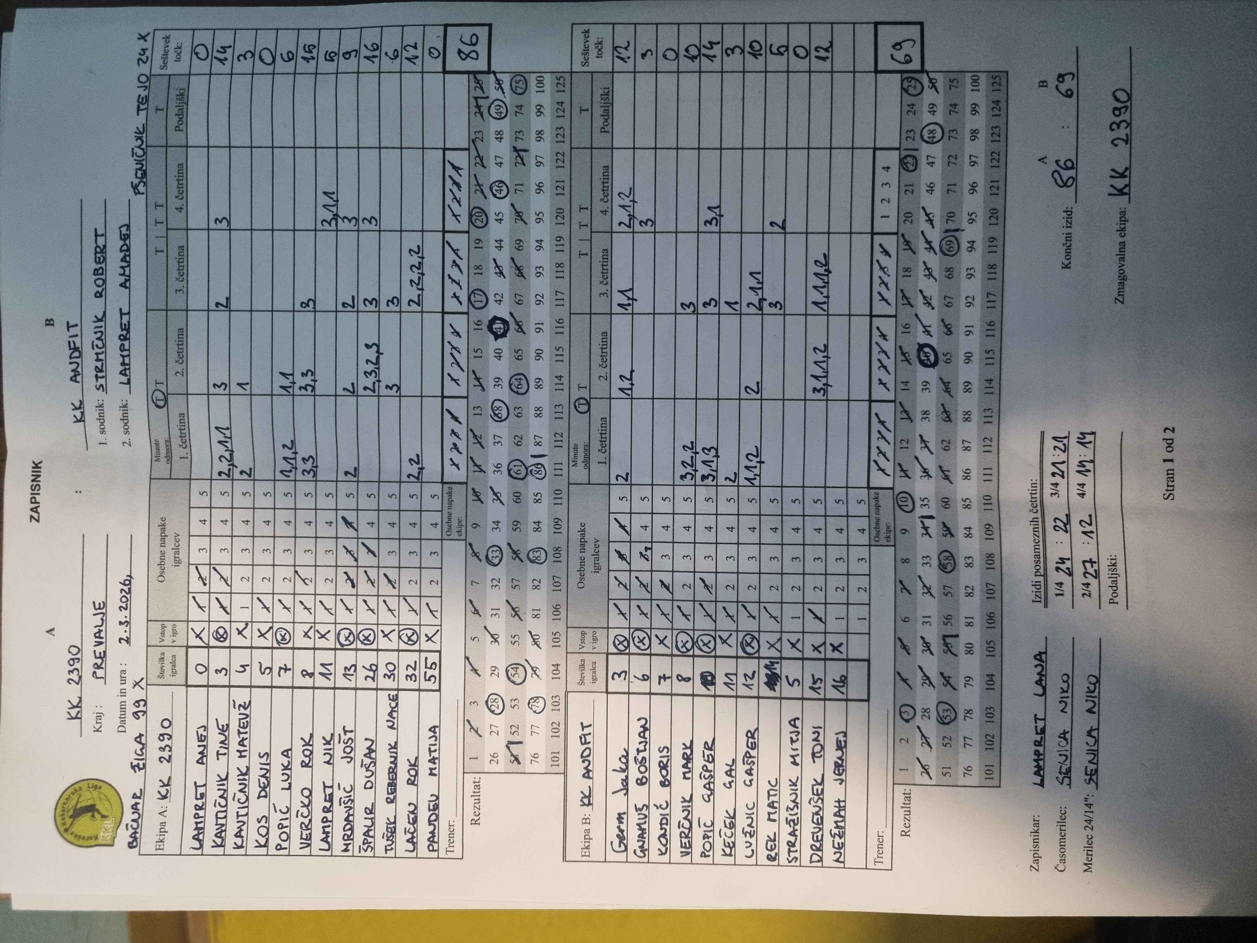 | ponedeljek, 2. marca 2026 | 20:30 | Koroška liga | 2025/26 | Strmčnik, Lampret |